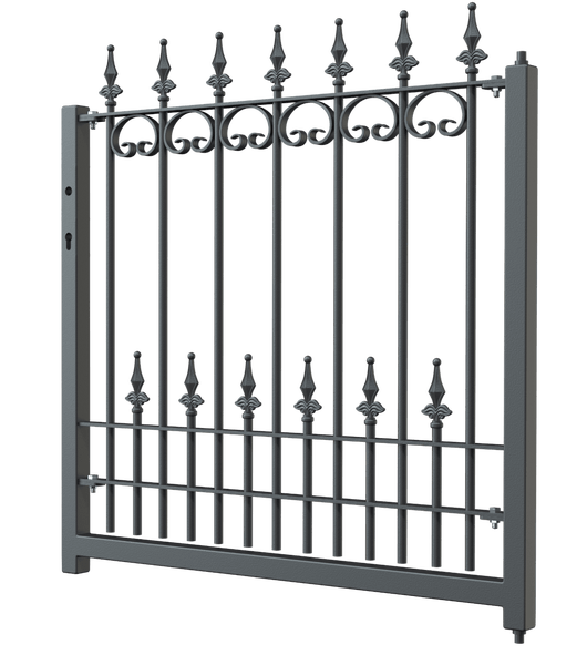 Einzeltor ELEO Metall Lucca mit Zubehör, Gartentor anthrazit - pulverbeschichtet schwarz, 100 x 90 cm