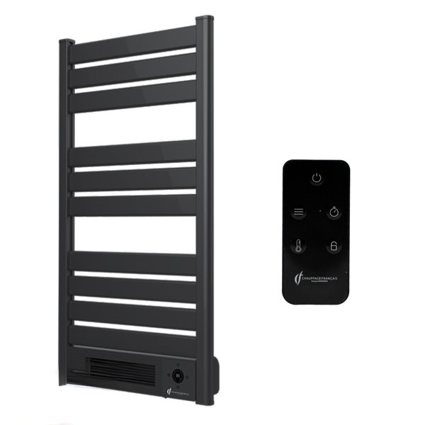 Eleganz und Komfort in Ihrem Badezimmer im AlltagDer elektrische Handtuchtrockner mit Gebläse Omiros bietet Ihnen maximalen Bedienkomfort mit einem LED-Panel, das die Raumtemperatur anzeigt und deren Einstellung ermöglicht. In Ihrem Badezimmer installiert, ermöglicht er Ihnen Einsparungen: Er dient dazu, Ihr Badezimmer zu heizen und auch Ihre Handtücher nach dem Duschen zu trocknen!Heizen Sie bis zu 15 m² effizient.Mit seinem eleganten Design fügt er sich perfekt in Ihr Badezimmer ein. Dank der mitgelieferten drahtlosen Fernbedienung können Sie Ihren Handtuchwärmer bequem aus der Ferne steuern.Der Handtuchwärmer mit Gebläse hält nicht nur die Handtücher warm und trocken, sondern trägt auch dazu bei, eine angenehme Raumtemperatur im Badezimmer aufrechtzuerhalten. Durch das schnelle Trocknen der Handtücher wird die Luftfeuchtigkeit im Badezimmer reduziert, was zur Vorbeugung von Schimmel und unangenehmen Gerüchen beitragen kann.