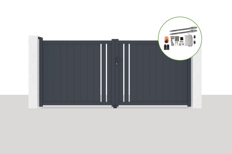 Diese Pakete umfassen eine Vielzahl von Flügeltoren zur Auswahl, begleitet von der entsprechenden Motorisierung.