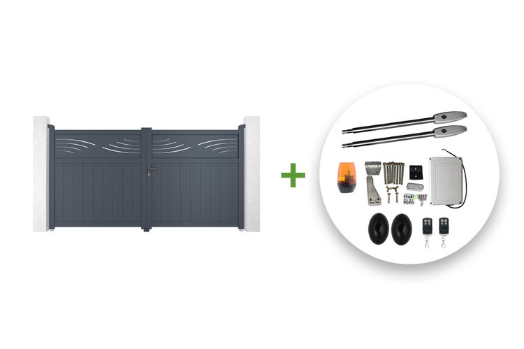 Elektrisches Flügeltor 3 m HALTI 300B160 grau + TANKER B250 Motorisierung