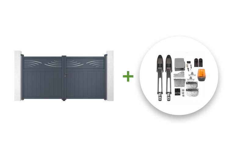 Elektrisches Flügeltor 3 m HALTI 300B160 grau + TANKER B700 Motorisierung