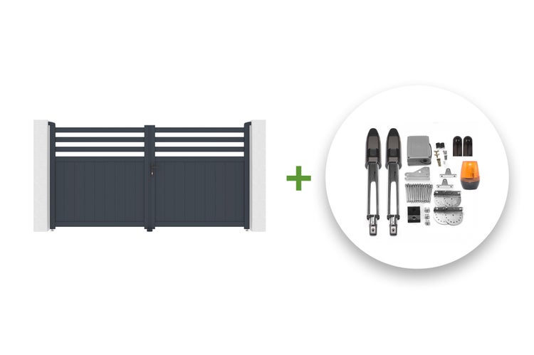 Elektrisches Flügeltor 3m NEVIS 300B160 grau + TANKER B700 Motorisierung