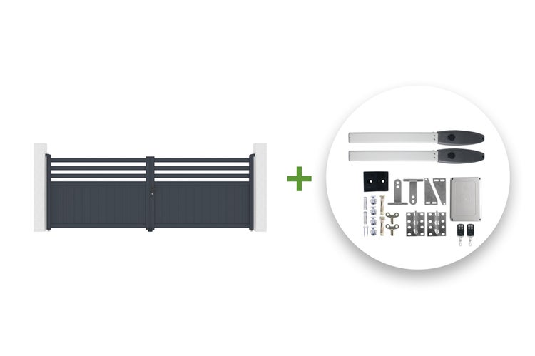 Elektrisches Flügeltor 4 m NEVIS 400B140 GRAU + Motorisierung HICKER B200