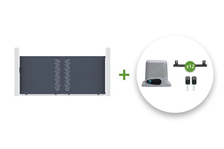 Wenn Sie Ihr Schiebetor motorisieren möchten, werden Ihnen in der Produktbeschreibung zu diesem Modell Aktionspakete angeboten, die aus einem Tor Ihrer Wahl mit dem passenden Antrieb bestehen.