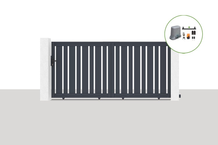 Entdecken Sie unser Aluminium-Schiebetor VEYMONT mit seinem einzigartigen Look dank der Mischung aus unterschiedlich großen Lamellen, die für eine unvergleichliche Originalität sorgen.