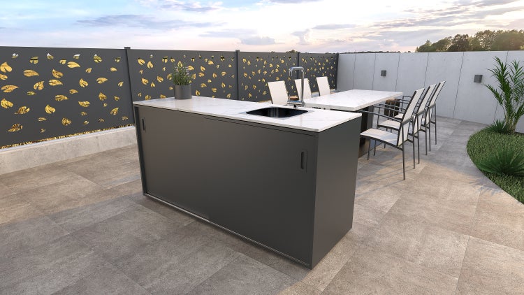 Element mit Spüle auf der rechten Seite, Anthrazit, Porzellan, 1800 x 634 mm, Höhe: 935 mm - Pulverbeschichtete Edelstahl-Outdoorküche Element