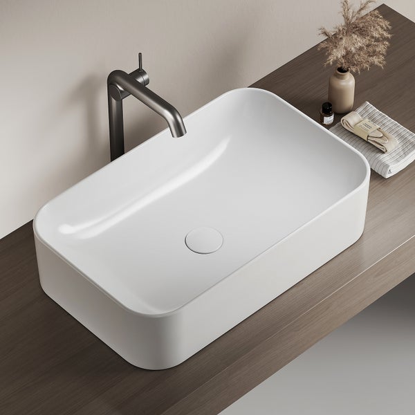 EMKE Aufsatzwaschbecken 61x38 cm R-Ecken ohne Hahnloch in weißer Keramik