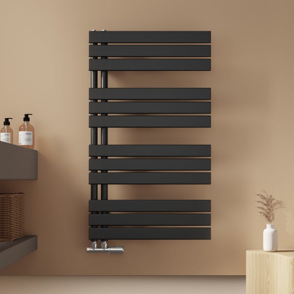 EMKE Badheizkörper 104x60 cm, Handtuchtrockner Flachheizkörper 639 W, Warmwasserbetrieb, unten Anschluss, Stahl, Schwarz