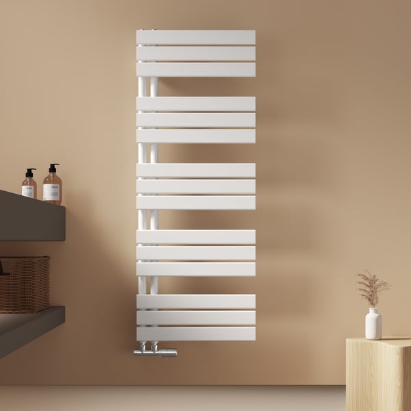 EMKE Badheizkörper 132x50 cm, Handtuchtrockner Flachheizkörper 661 W, Warmwasserbetrieb, unten Anschluss, Stahl, Glänzend Weiß