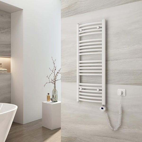 EMKE Badheizkörper Elektrisch Handtuchwärmer mit Thermostat Gebogen 100x40cm 300 Watt Weiß Handtuchtrockner Handtuchheizkörper Bad