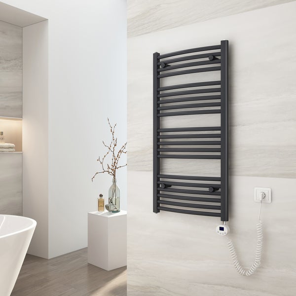 EMKE Badheizkörper Elektrisch Handtuchwärmer mit Thermostat Gebogen 100x50cm 500 Watt Anthrazit Handtuchtrockner Handtuchheizkörper Bad