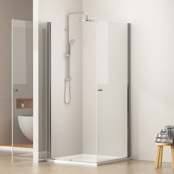 EMKE Eckeinstieg Duschkabine 80x90 cm, 185 cm hoch, Doppel-Drehtür, Profil Chrom, Schmutzabweisendes Glas