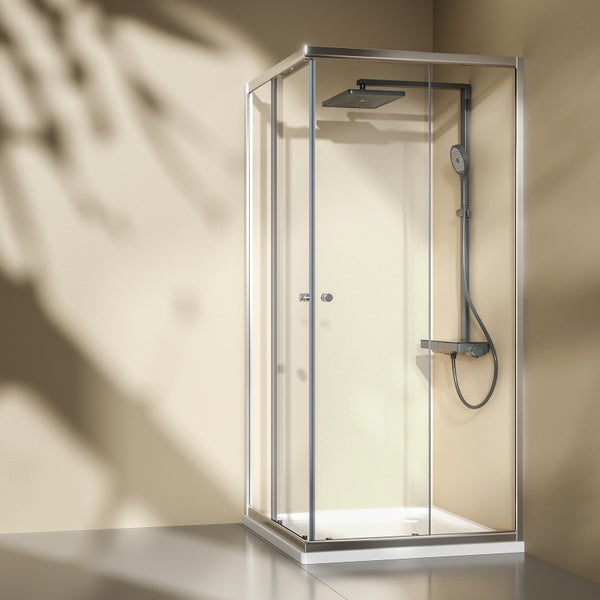 EMKE Eckeinstieg mit Schiebetür 80x80 cm, Komplettdusche, Klarglas mit schmutzabweisende Glasbeschichtung, Profil chrom, Türanschlag links/rechts