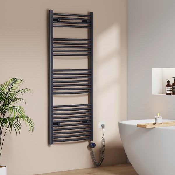 EMKE Elektrischer Badheizkörper 140x60 cm Gebogen 600 W Thermostat WLAN Timer Handtuchwärmer Anthrazit