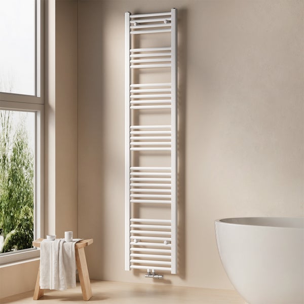 - Ästhetik & platzsparendes Design: Das kompakte, vertikal montierbare Design passt ideal in kleine oder große Badezimmer. Die Rundrohre bieten Platz zum Aufhängen von Handtüchern und Kleidung und sorgen für angenehm gleichmäßige Wärme, ohne dass die Luft trocken oder einzelne Stellen überhitzt werden.
