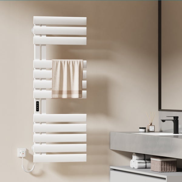 EMKE Handtuchheizkörper Elektrisch 130×50 cm 440 W Smart Touch/App-steuerbar IPX5 Flache Rohre Linksanschluss Weiß