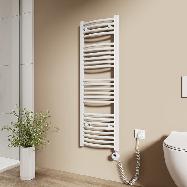 EMKE Handtuchheizkörper elektrisch mit Heizstab 120x40 cm, Gebogener Handtuchwärmer 500 W, Touch-Display, Stahl, Glänzend Weiß