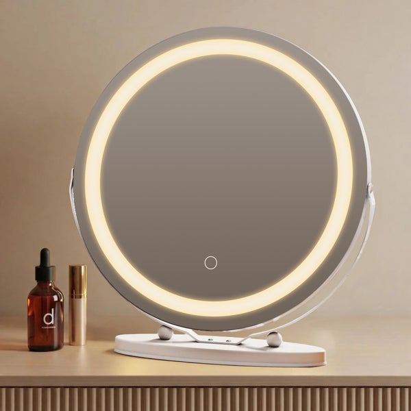 EMKE Tisch-Schminkspiegel mit Beleuchtung – Ø48 cm, dimmbar, 3 Lichtfarben, mit Touchschalter und Speicherfunktion – ideal für Schlafzimmer oder SchminktischVerwandeln Sie Ihren Schminkbereich in eine professionelle Beauty-Zone – mit dem EMKE LED-Tischspiegel. Dank präziser Lichtsteuerung, modernem Design und hoher Funktionalität ist dieser Spiegel der perfekte Begleiter für Ihre tägliche Pflege- und Schminkroutine.Produktmerkmale