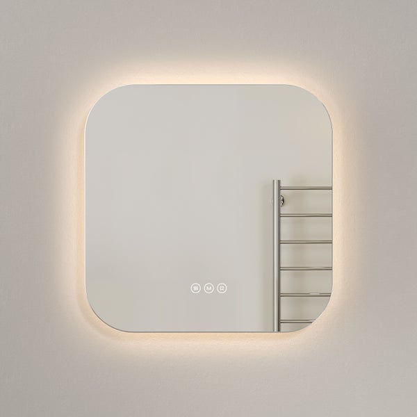 EMKE LED asymmetrischer Spiegel 50x50 cm, 3 Lichtfarben einstellbar, beschlagfrei, horizontal & vertikal montierbar