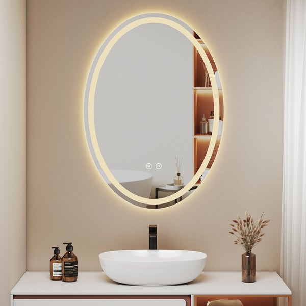 EMKE LED Badspiegel Oval 70x50 cm Doppellicht 3 Lichtfarben Touch Antibeschlag