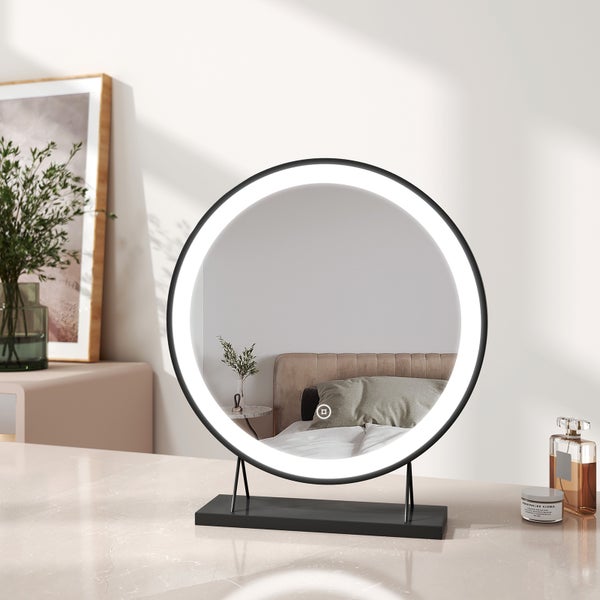 EMKE Schminkspiegel LED Kosmetikspiegel Rund Tischspiegel mit Beleuchtung, mit Touch, 3 Lichtfarben,Dimmbar, Memory-Funktion Schwarz ф40cm