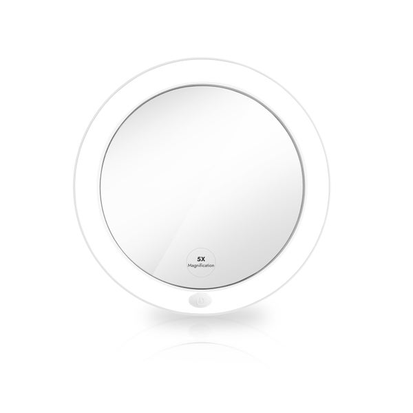 EMKE Schminkspiegel mit Licht Ø16,5 cm 5-fach Vergrößerung magnetischer Reisespiegel Weiß Weihnachtsgeschenk