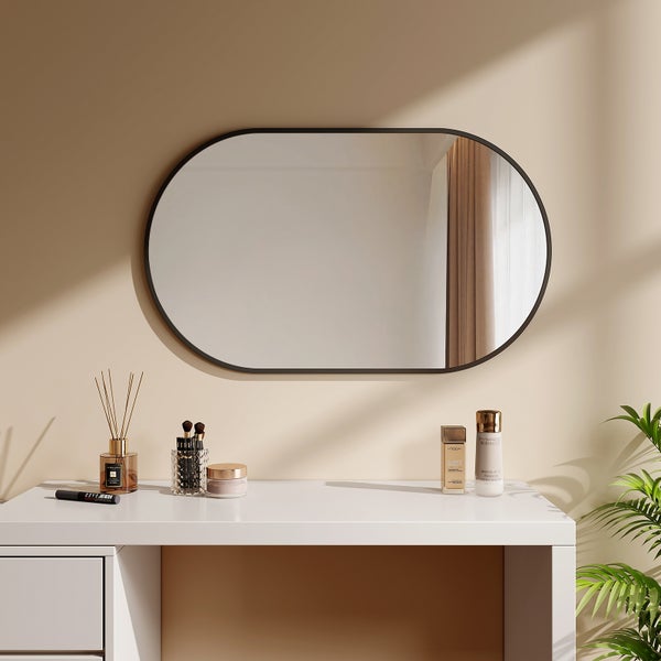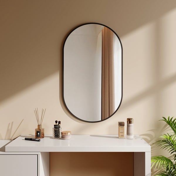 EMKE Wandspiegel 60x100 cm Oval, HD, rostfrei, schwarzer Rahmen, horizontal & vertikal montierbar
