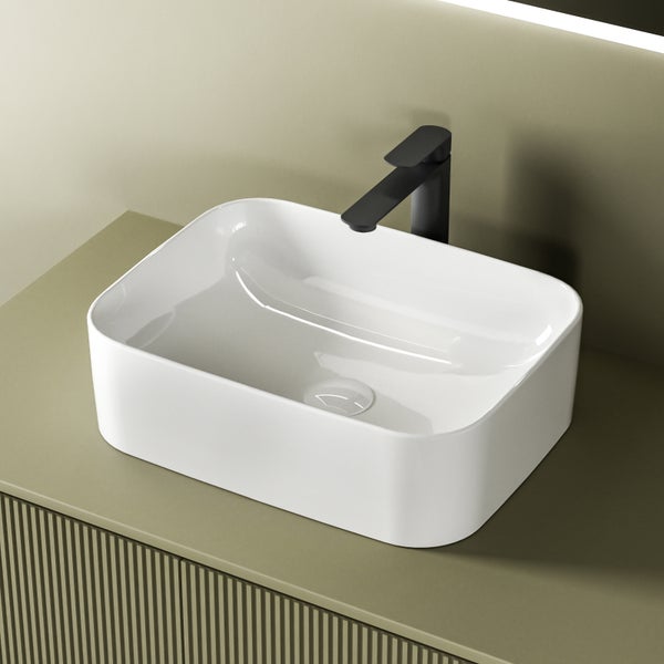 EMKE Waschbecken 50,5x38 cm Waschschale Aufsatz R-Ecken Keramik-Waschtisch Glänzend Weiß