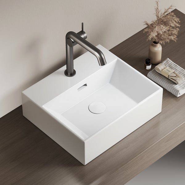 - Stilvoll & platzsparend: Rechteckiges Design mit klaren Kanten – ideal auch für kleinere Badezimmer.