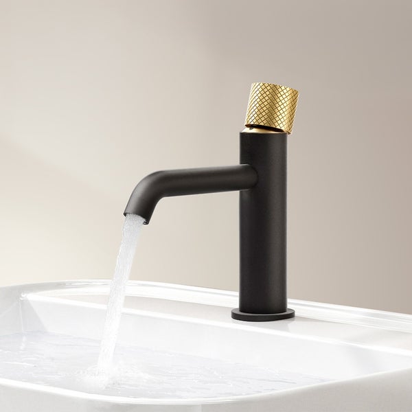 EMKE Waschtischarmatur mit geriffeltem Kupfergriff 18 cm, grifflose Kalt-Warm-Mischbatterie, Neoperl Luftsprudler, Schwarz-Gold