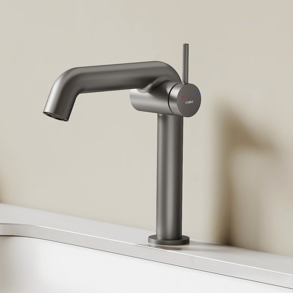 Die EMKE Waschtischarmatur, ausgezeichnet mit dem IF Design Award, besticht durch klare Linien und minimalistische Eleganz. Aus bleifreiem Messing gefertigt, bietet sie Langlebigkeit, Korrosionsschutz und wassersparende Technologie. Ideal für moderne Badezimmer.