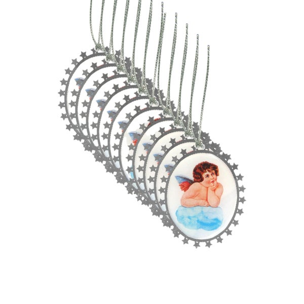 Engel weißes Retro Medaillon (Set 10) - Pluto Design