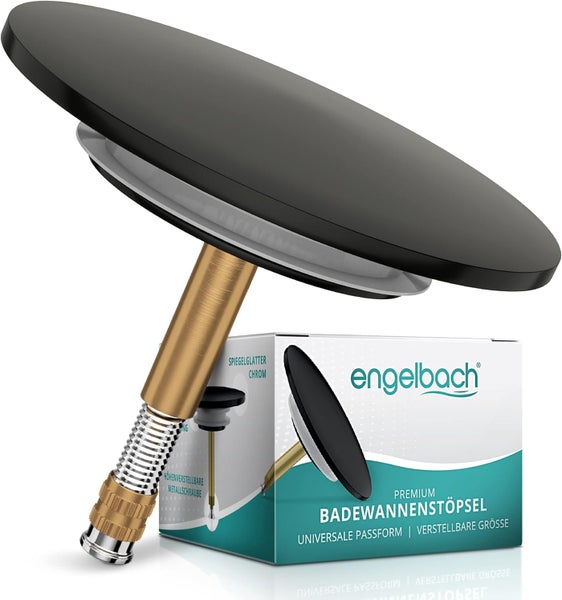Engelbach® Badewannenstöpsel mit Universaler Passform - integrierte Doppel Dichtung - Schwarz