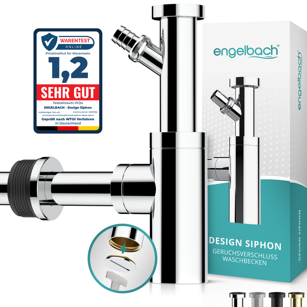 Engelbach® Design Siphon für Waschbecken & Waschtisch - Mit Reinigungsöffnung - r 1 1/4 - inkl. Gummimanschette und Anleitung