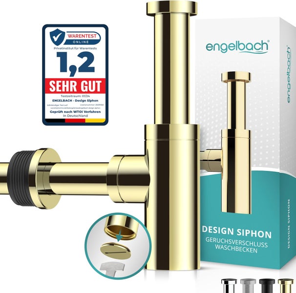 Engelbach® Design Siphon für Waschbecken & Waschtisch - Mit Reinigungsöffnung - r 1 1/4 - inkl. Gummimanschette und Anleitung