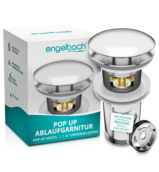 ENGELBACH Universal Waschbecken Ablaufgarnitur - mit Überlauf - inklusive Einbauanleitung - Chrom