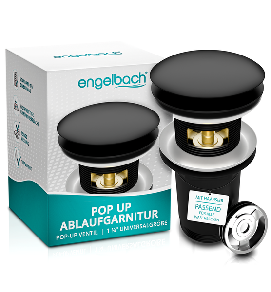 ENGELBACH Universal Waschbecken Ablaufgarnitur - Mit Überlauf - inklusive Einbauanleitung - Schwarz