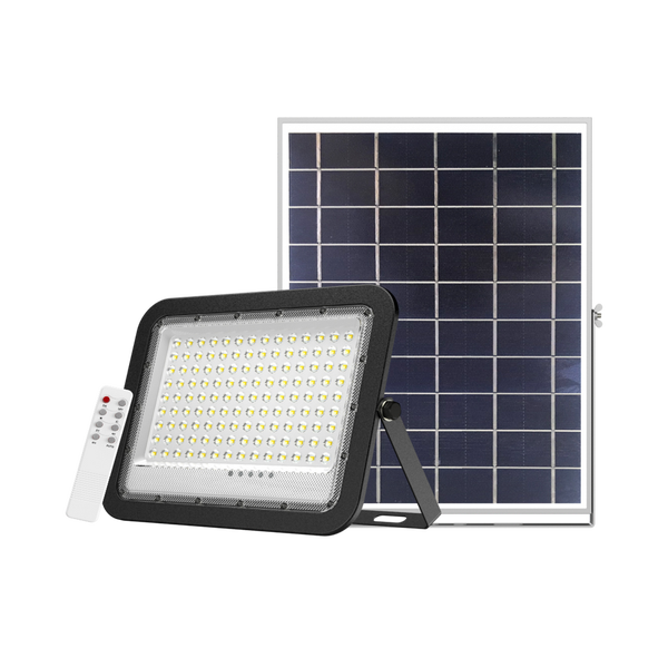 ENOVALITE Solarstrahler PRO 100W 1400lm 6500K Kaltweiß IP65 Außenstrahler Solar Fluter Dämmerungssensor Fernbedienung Schwarz