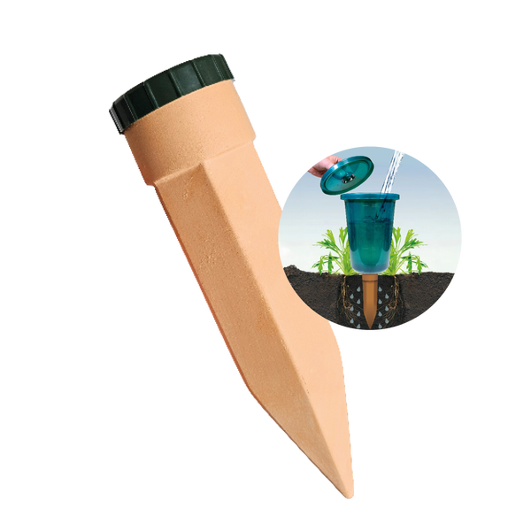 Einfach Tonkegel in die Erde stecken und den separat erhältlichen Becheraufsatz mit Wasser befüllen. Das Bewässerungssystem “Hydro Cup” kümmert sich um Ihre Pflanzen, während Sie zum Beispiel Ihren Urlaub genießen können.