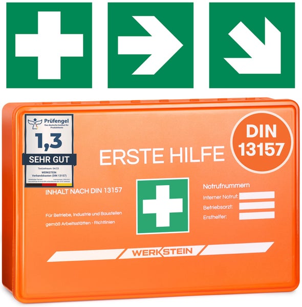 EIN RETTER IM NOTFALL - Bei ernsten Unfällen oder Verletzungen müssen Sie schnell handeln und helfen können. Hierfür haben wir speziell den WERKSTEIN Verbandkasten DIN 13157 entwickelt.