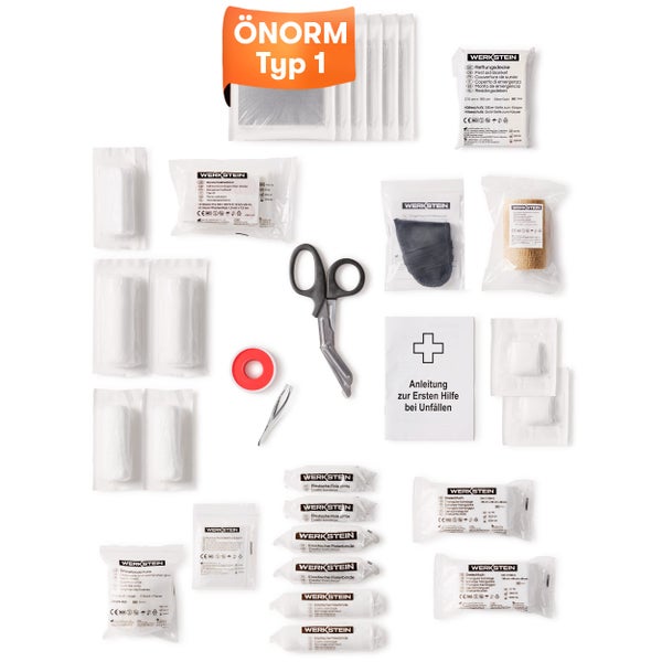 INHALT NACH ÖNORM Z1020 Typ1 - Das Nachfüllset ist geeignet für Betriebe mit bis zu 5 Beschäftigten und entspricht den Anforderungen der ÖNORM Z 1020, Type 1.
