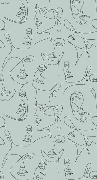 ESTAhome Fototapete Line Art Gesichter Graugrün 150 x 279 cm