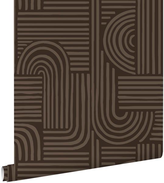 Diese Tapete mit 3D-Muster in Dunkelbraun macht jede Wand zu einem wahren Hingucker und passt perfekt in einen modernen Einrichtungsstil.
