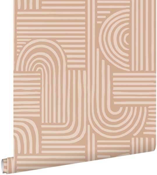 Diese Tapete mit 3D-Muster in Terrakotta macht jede Wand zu einem wahren Hingucker und passt perfekt in einen modernen Einrichtungsstil.