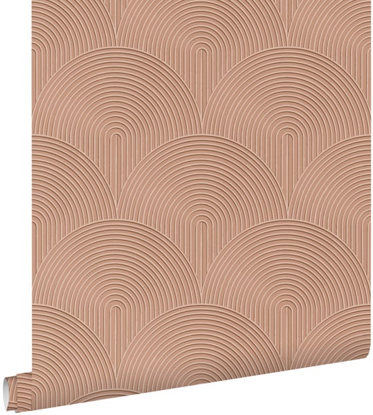 Diese Tapete mit 3D-Muster in Terrakottarosa macht jede Wand zu einem wahren Hingucker und passt perfekt in einen modernen Einrichtungsstil.