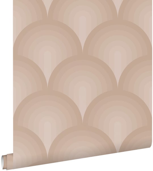 Diese Tapete mit 3D-Muster in Terrakottarosa macht jede Wand zu einem wahren Hingucker und passt perfekt in einen modernen Einrichtungsstil.