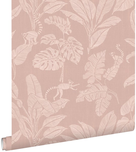 ESTAhome Tapete Affen und Dschungelblätter Altrosa 50 x 900 cm