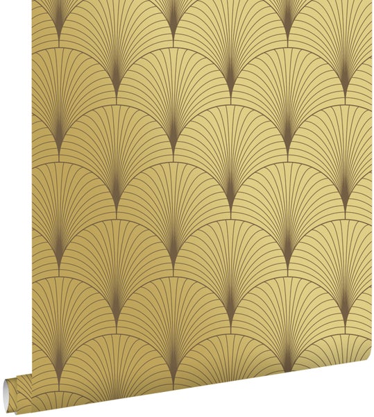 Diese schöne Tapete mit Art Decó Muster in Gold verleiht jedem Wohnraum einen frischen Look. Diese Tapete kann mit vielen Stilen und Farben kombiniert werden und das macht diese Tapete zu einem absoluten Must-Have.