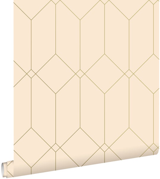 ESTAhome Tapete Art Decó Muster Gold und Beige 53 cm x 10.05 m