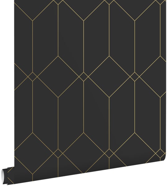 ESTAhome Tapete Art Decó Muster Schwarz und Gold 53 cm x 10.05 m
